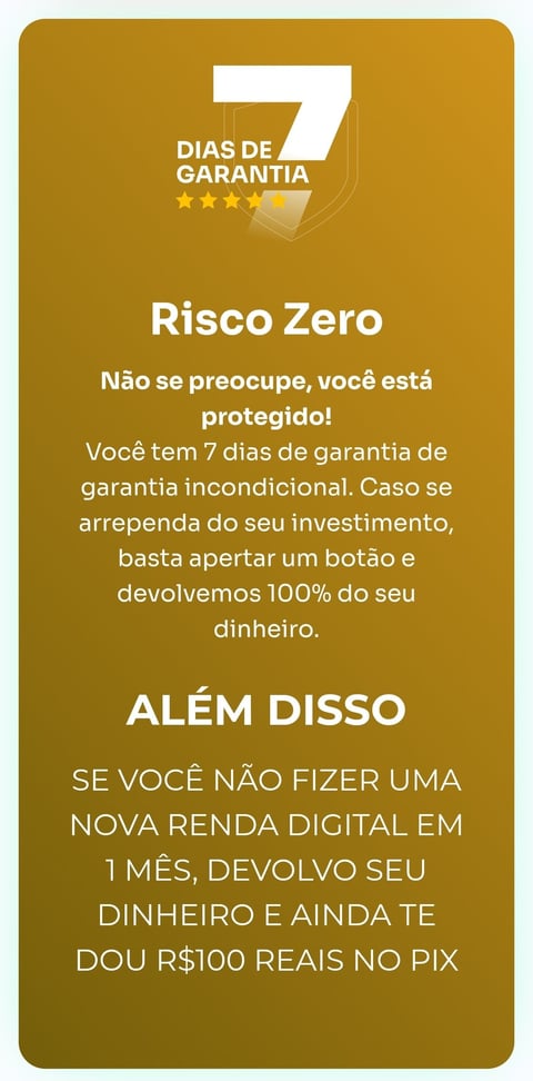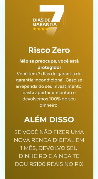 SE VOCÊ NÃO FIZER UMA NOVA RENDA DIGITAL EM 1 MÊS, DEVOLVO SEU DINHEIRO E AINDA TE DOU 100 REAIS NO PIX.